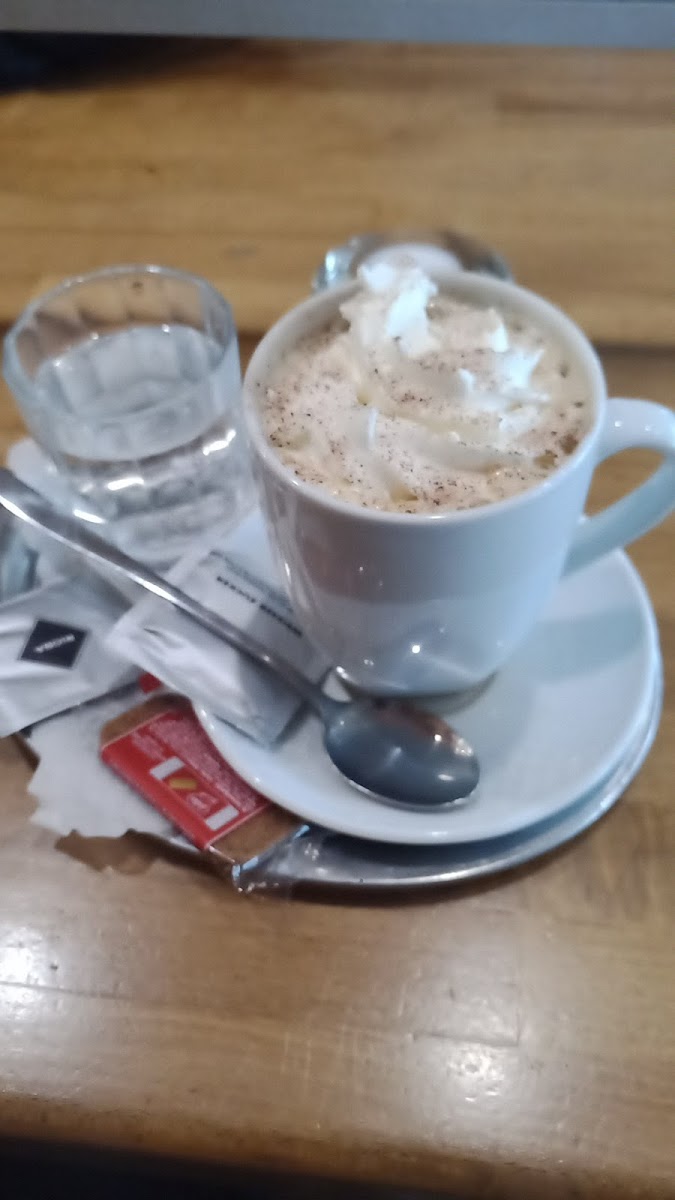 Das Kaffee ist in Ordnung mit eher älterer Einrichtung. Die Bedienung kam rasch und es war in Ordnung. Preise sind in Ordnung, Parkplätze vor der Tür.